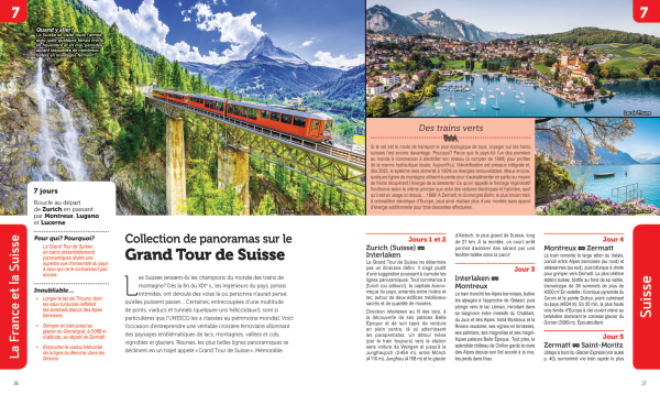 Et plus encore des descriptions en détail, au jour le jour chaque itinéraire, les villes et villages à découvrir et les panoramas à contempler. Observez encore et encore, toutes les indications utiles sur la vie à bord des trains et de précieux conseils pour profiter pleinement de votre voyage. Régalez-vous.