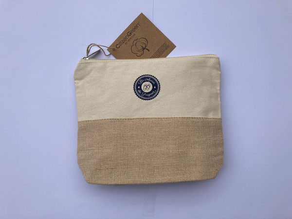 Votre Pochette...Et pour emmener tous vos petits effets en voyage... Raffinée, composée en jute et coton biologique, elle sera votre compagne indispensable pour l'organisation de vos déplacements ou tout simplement pour transporter votre réjouissant petit bazar.