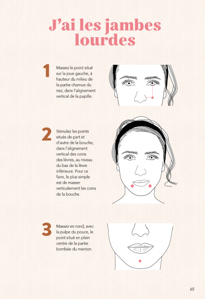 Et pour un peu de relaxation et de beauté... « Si votre but est de détendre, massez les points du haut vers le bas(massage yin). Si à l'inverse, vous souhaitez obtenir un effet tonifiant, effectuez votre massage du bas vers le haut (massage yang).